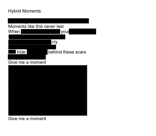 Andrew in Uncategorized March 25, 2026 8 Words Redacted Poetry From Song Lyrics “Hybrid Moments” by Misfits for brain injury recovery. Share this: Share on Facebook (Opens in new window) Facebook Like Loading...